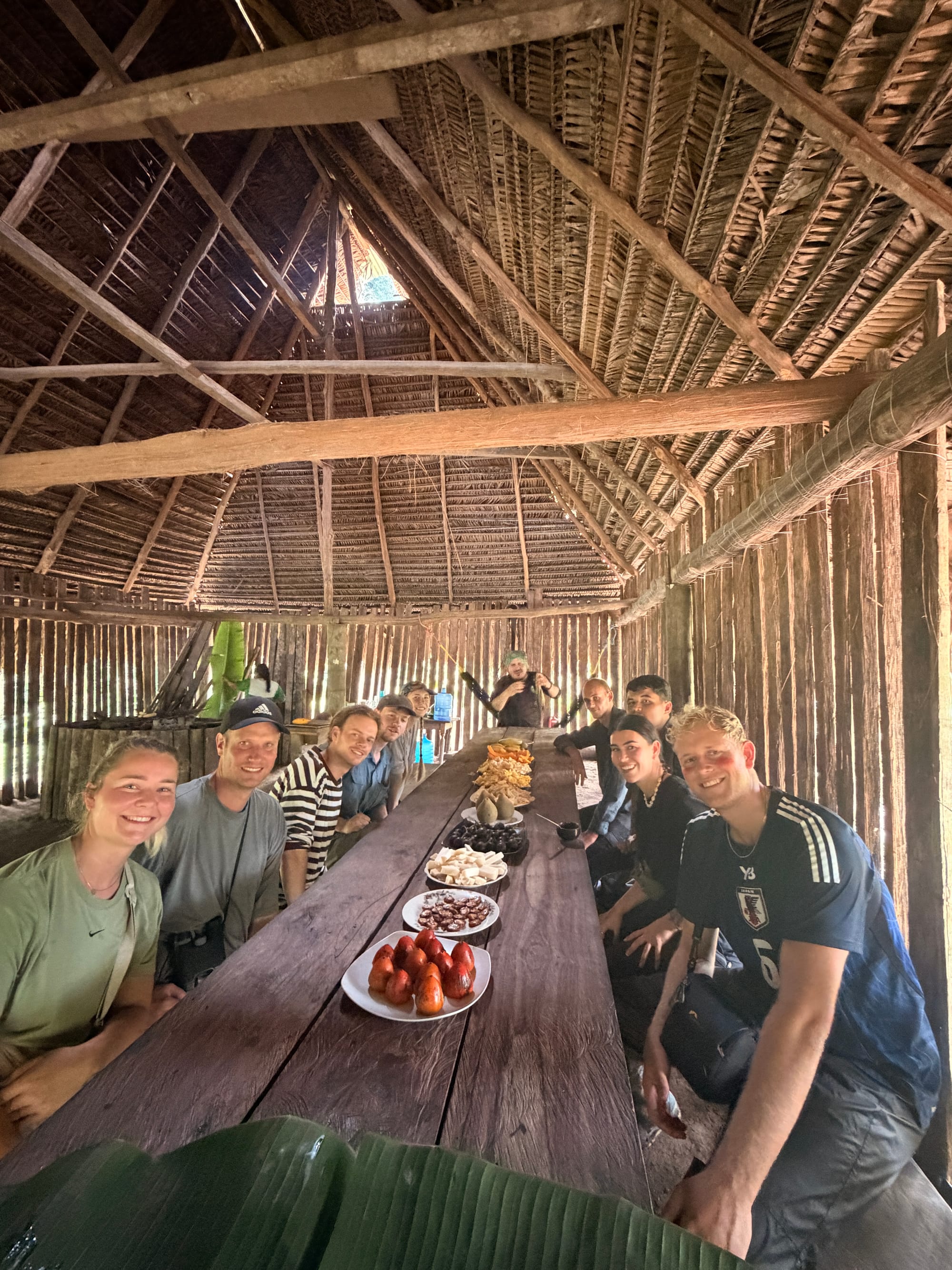 The Shaman then explained of a healing ritual he performs on his people who are injured, and offered it to us if we had any pain. My knee has been a bit dodgy since running the London marathon in 2023, so I decided to do it. It involved the Shaman repeatedly hitting my knee and the surrounding area with jungle stinging nettles (much more painful than the ones found in the UK). This went on for 2 minutes and was extremely painful, but I kept my cool for the most part. The idea is that if you do it consistently, the reaction forces blood to the injured area, supposedly helping to heal it. I’m not sure if I buy it, but it certainly made me forget about my knee pain for a few hours.