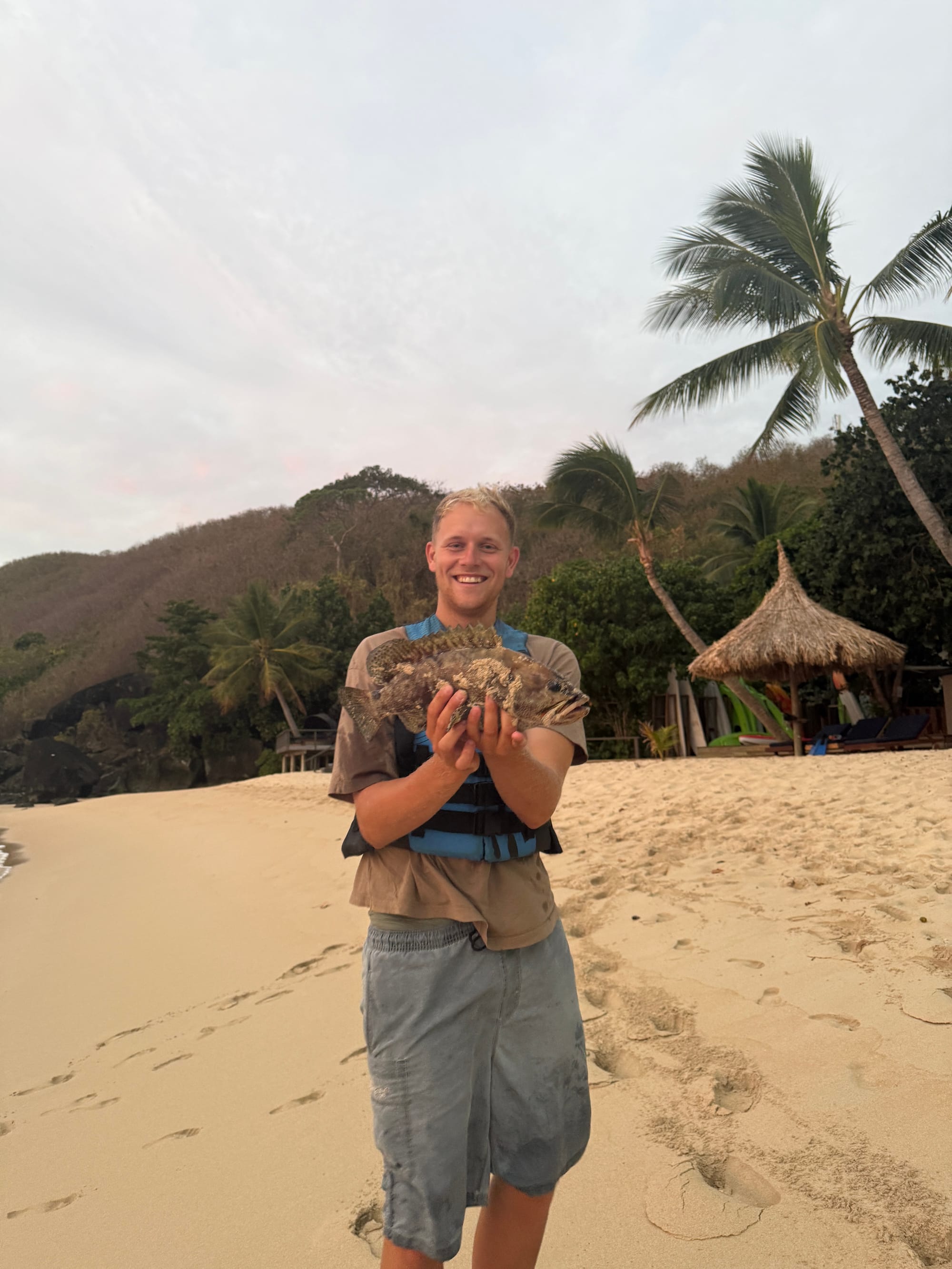 We also did hand-line fishing one afternoon. We got taken out to three different fishing spots, were provided with a fishing line and taught how to catch fish. I started off strong catching a nice snapper but then Ned of course had to one up me and caught a huge cod. The staff let us give it to the kitchen so that we could have it for lunch the next day. However, when lunch came around they had mixed up the fishes and couldn’t give us the one Ned caught. They did however, give us an even bigger fish and all the sides as well as a glass of champagne to apologise for their mistake.