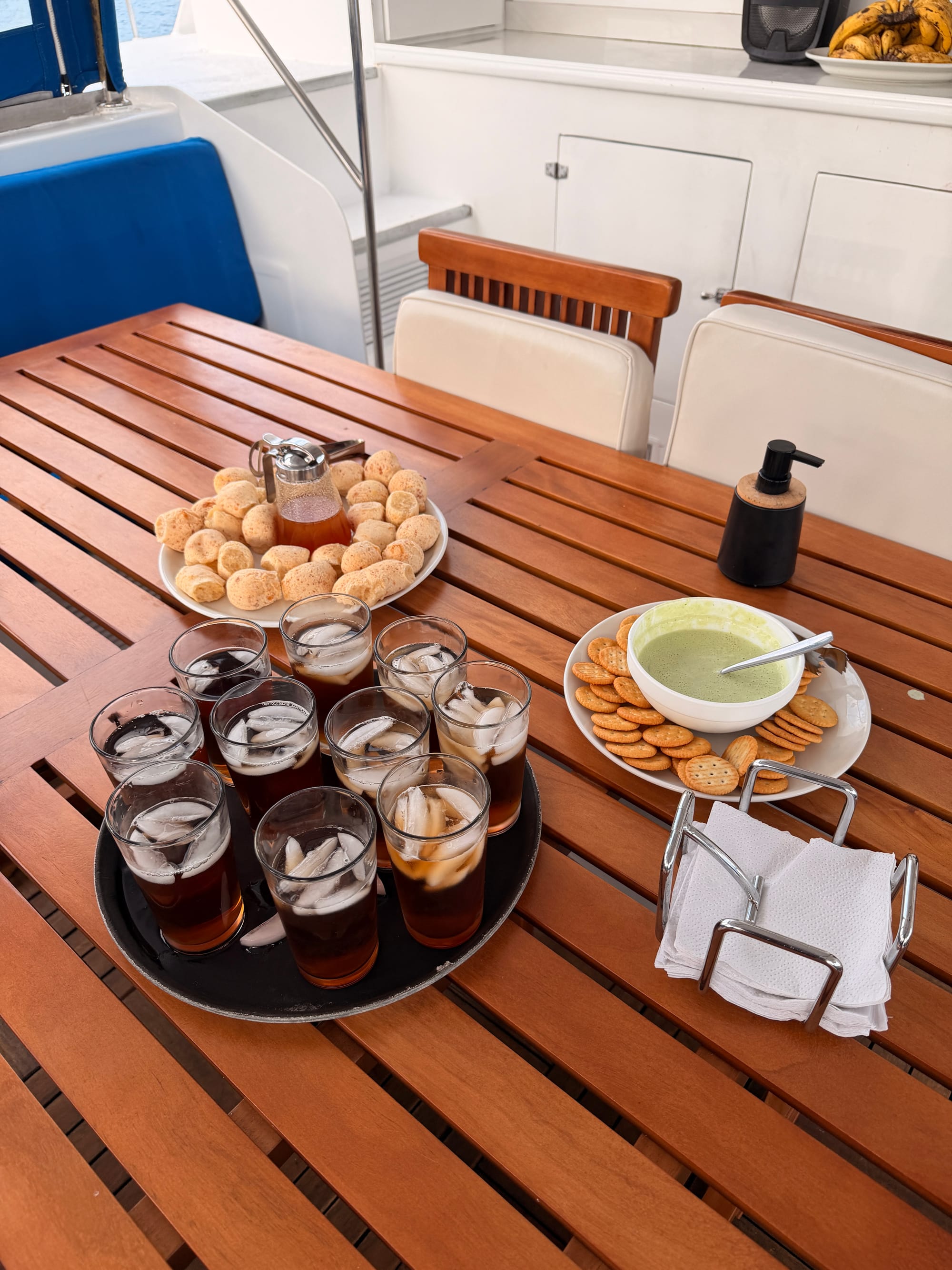 After every afternoon activity, we are offered a delicious mixture of snacks and drinks. Depending on the activity we did, the drinks could either be refreshing ice tea and fruit smoothies or a hot chocolate to warm us up. We then spend the next hour or so watching the sunset and playing cards before having dinner and trying not to think about how choppy it was.