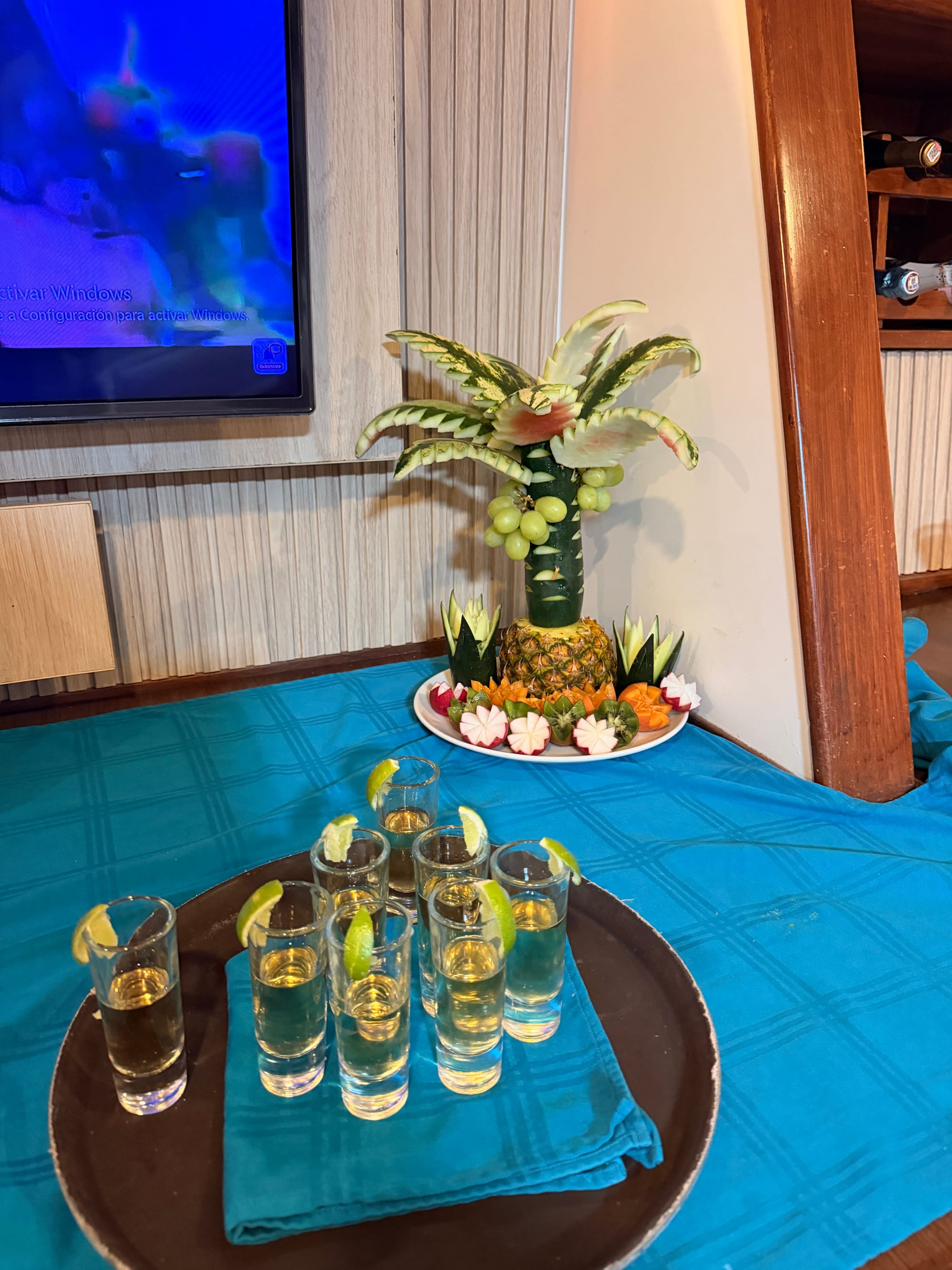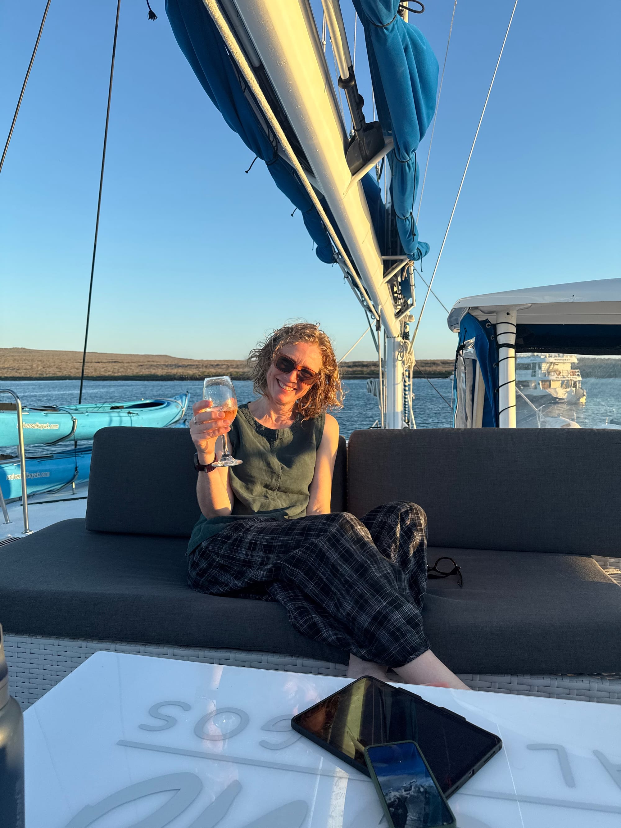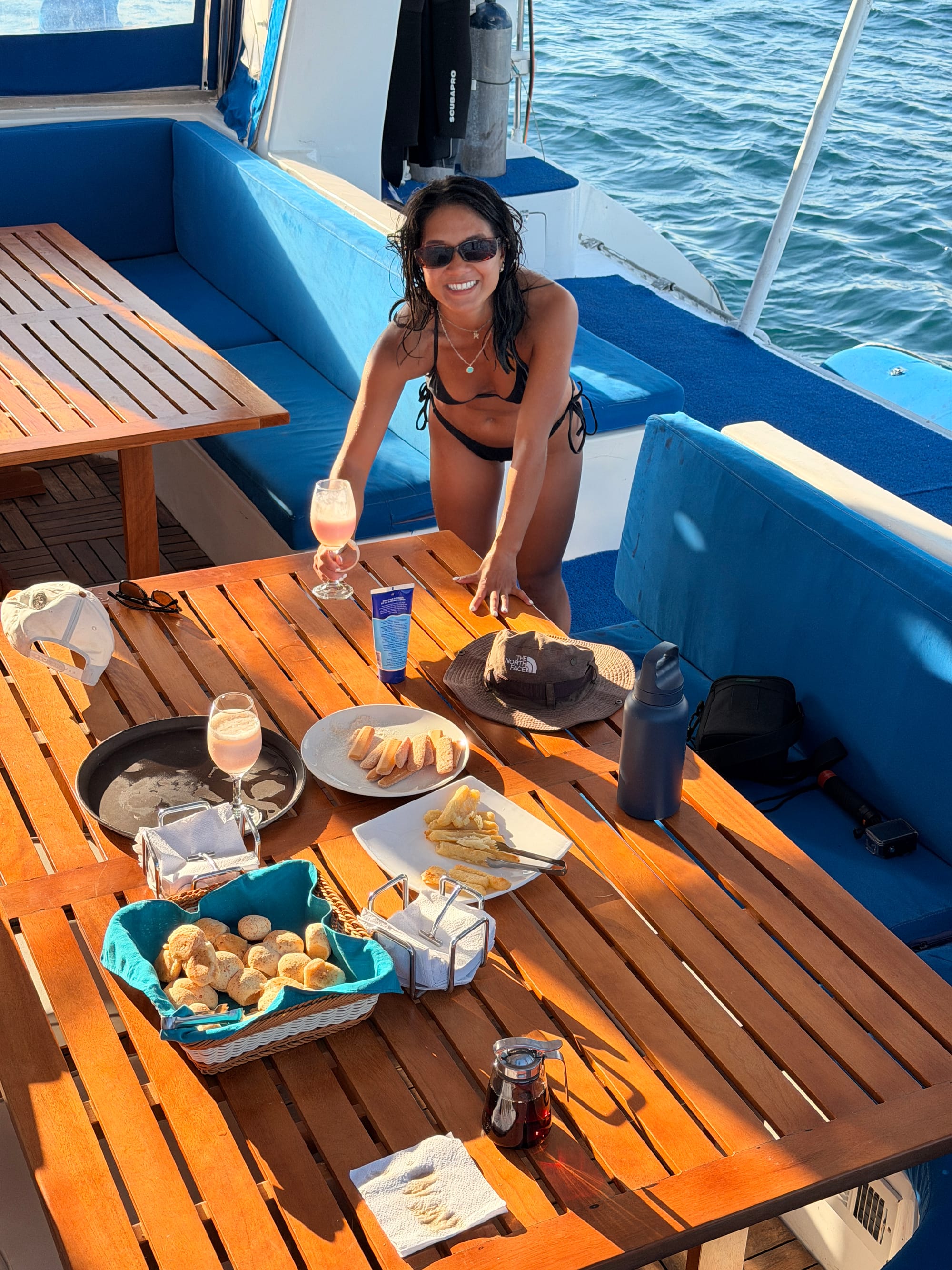 Our last evening together, was spent watching another gorgeous sunset, having drinks on top deck and saying a big thank you to the crew and Leonidas for looking after us for the whole week. We also had a few drinks and cocktails before the evening ended and we sailed back to Santa Cruz.