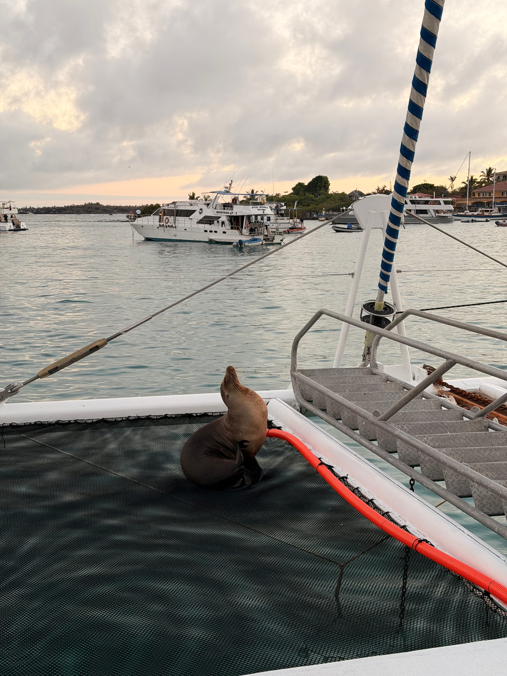 We spent the next couple of hours going for an evening dip, watching the sunset from the port and having drinks on the top deck. We also had a surprise at the front of the boat with a sea lion joining us for the evening.