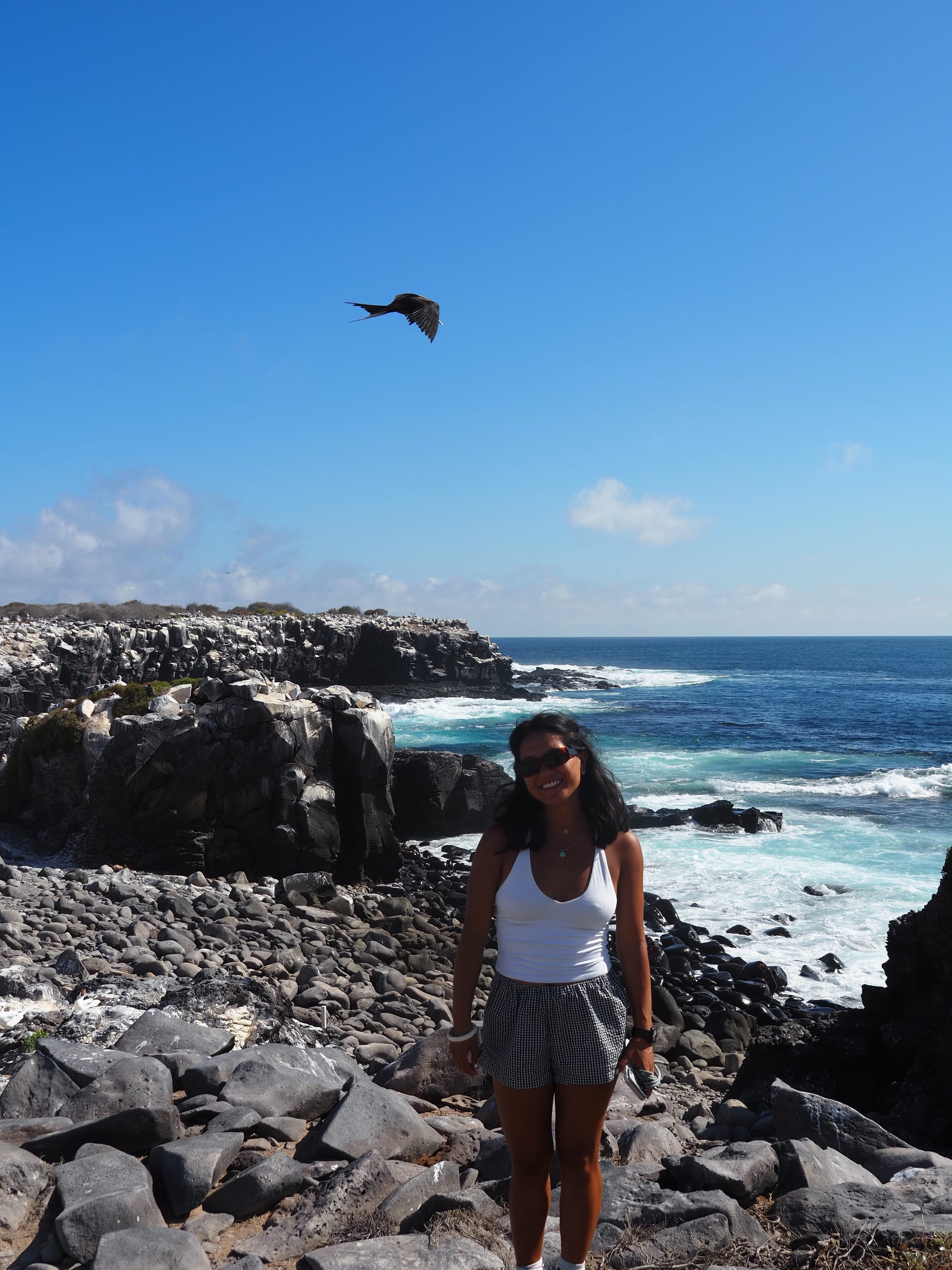 We spent the next two hours walking around Punta Suárez, one of the most stunning landscapes we visited on the entire cruise. This island is also one of the only places to see the Galápagos Albatross. We were told by our guide that in January most albatross have left the island to migrate, and we would be lucky if we saw one. That made it even more amazing when we saw both adult and baby albatross on the island, Ned managed to capture a good snap of an adult in flight!