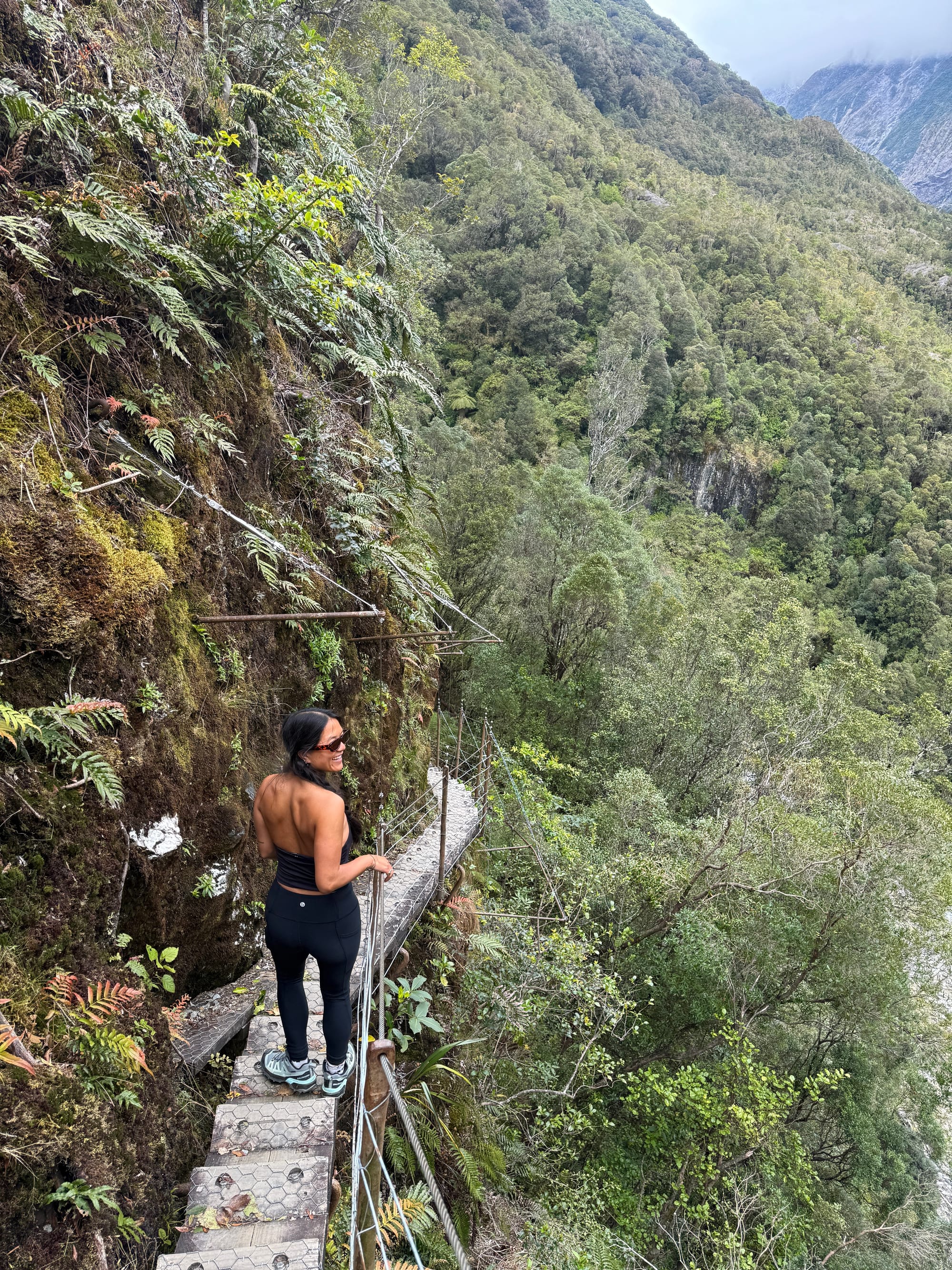 There are two main hikes to do in Franz Josef, one is the Heli Glacier Hike, which takes you into the glacier. However, it is very weather dependent and only 50% of the time it can actually be done as the weather changes so much. After our hike got postponed, we decided to do the Roberts Pass hike instead and it didn’t disappoint. It doesn’t take you onto the glacier, but you can see it quite closely from the top of the viewpoint. The hike is 12.3km return and can take between 4-6 hours to complete. The track offers stunning views of the Franz Josef Glacier, involving stream crossings, multiple swinging bridges, rock climbing, stairs and steep sections with waterfalls and sheer cliffs.