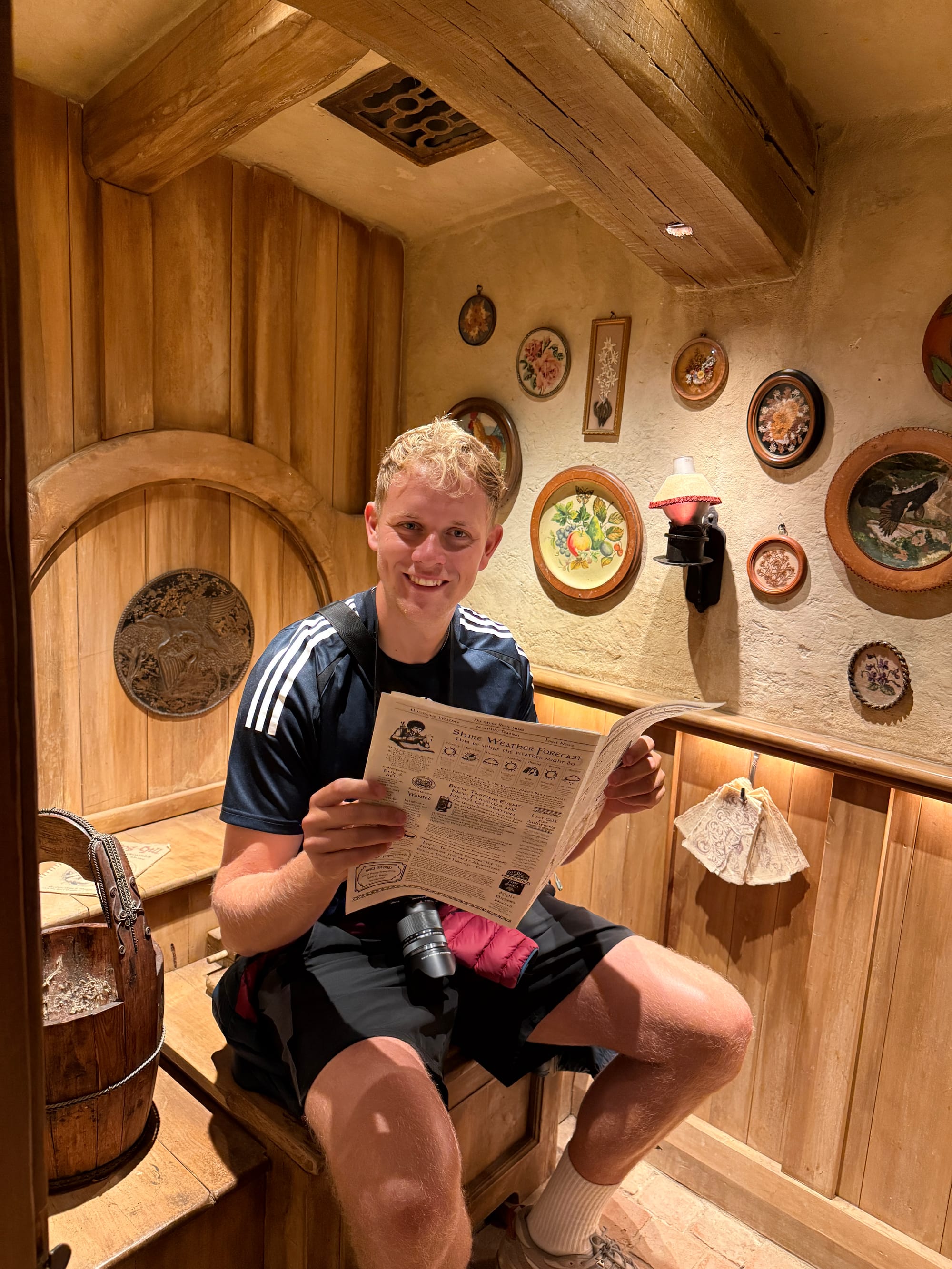 Once we arrived at Hobbiton, we spent 30 minutes to an hour walking around, taking in the scenery and the incredible detail of the movie set, which was insane!!! (even for non LotR fans). After walking around, we arrived at the only two fully furnished Hobbit holes in which you can actually enter, and something that was only added to the movie set experience in 2023. The guides made it clear that we had free rein and were allowed to touch anything we wanted, barring we didn’t break anything. The level of detail on the interior was outstanding and if Ned wasn’t so tall we would move in, in a heart beat!