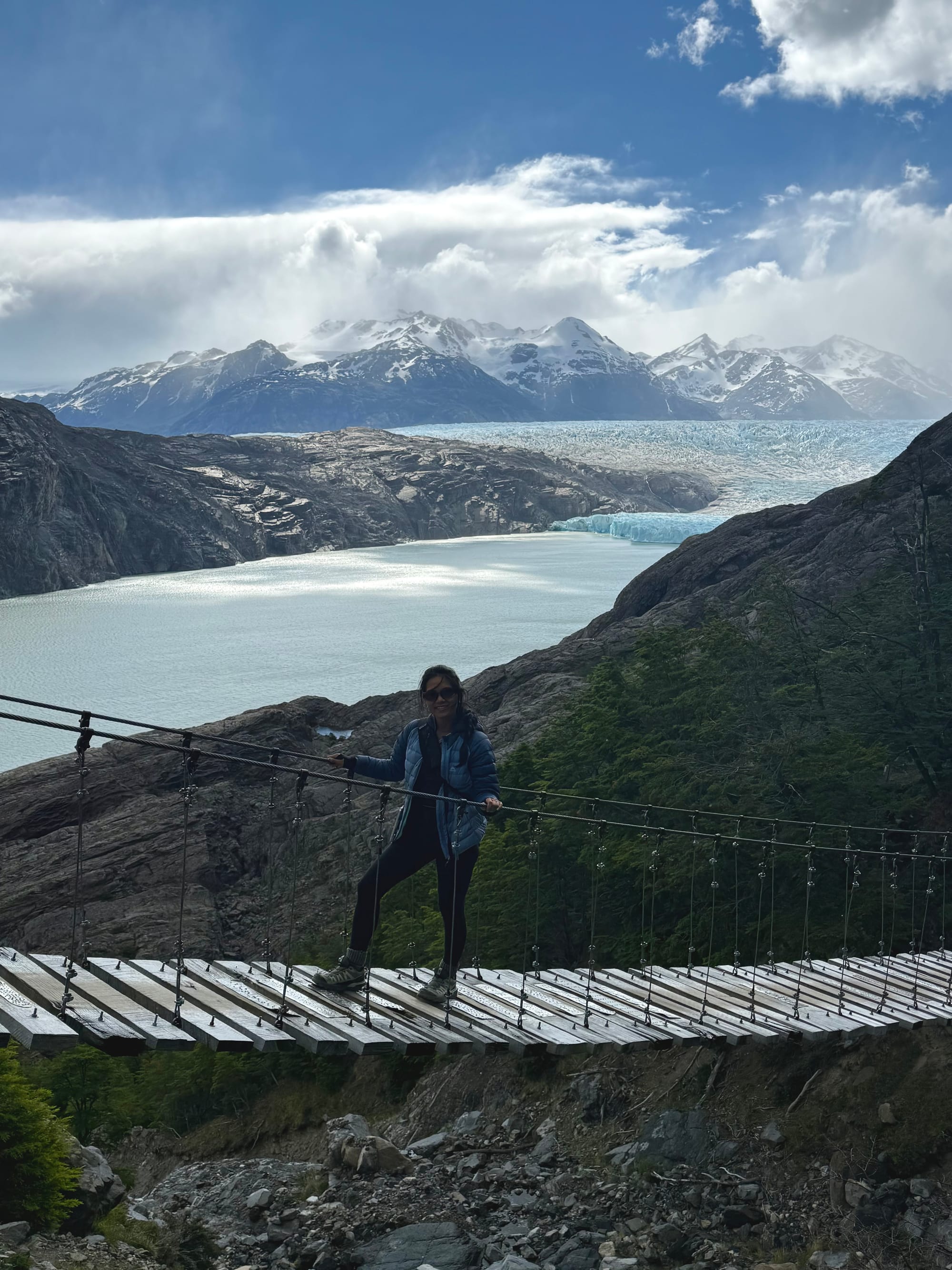 Once we got to camp, we checked in and set up our tent before going on an additional 5km hike to the Mirador Glacier Grey and the John Garner Suspension Bridge. Both viewpoints gave us the opportunity to get closer to the Glacier.