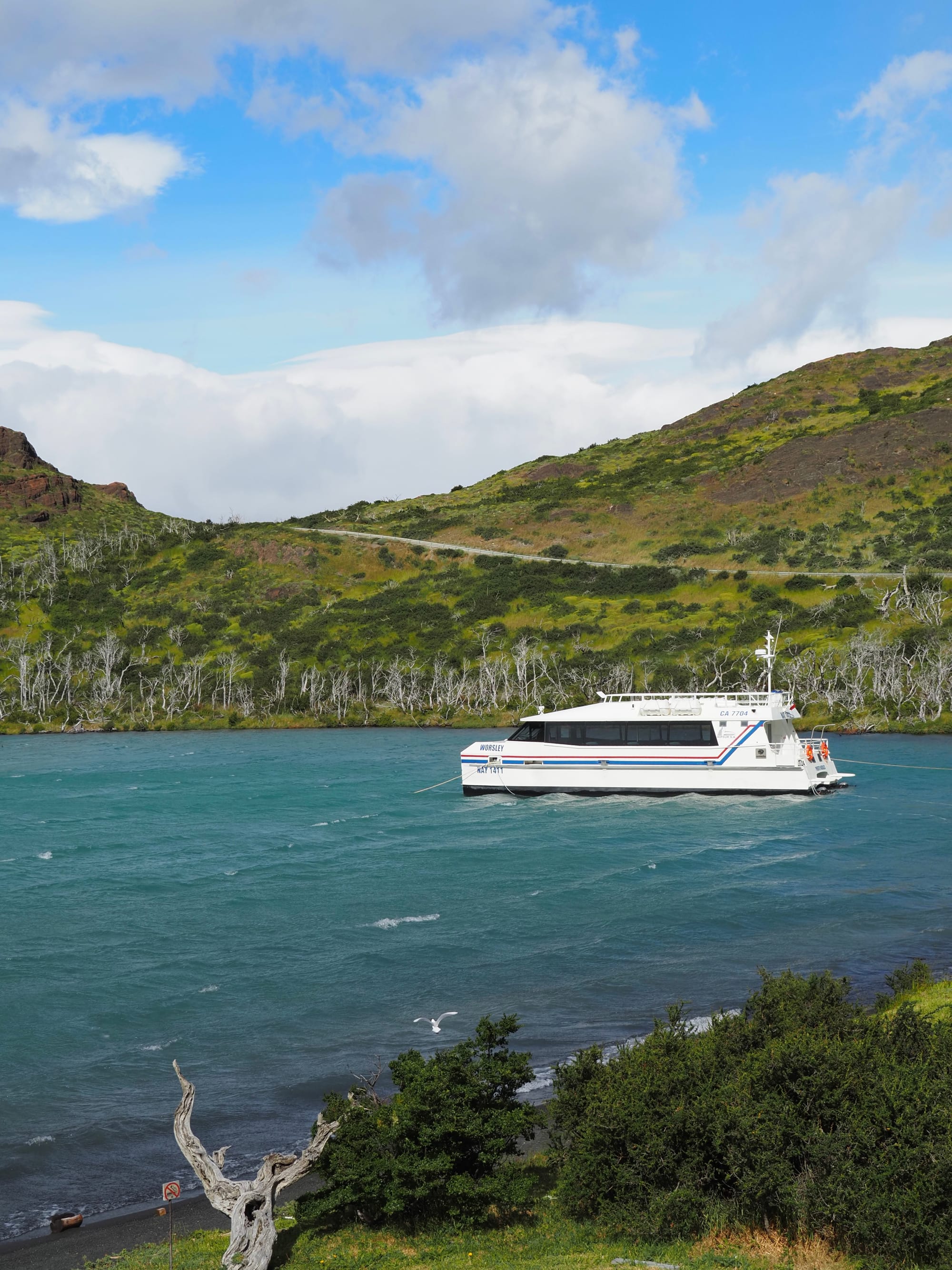 Our first day consisted of an early start at 5:30am to catch our bus from Puerto Natales to Pudeto at 6:30am. The bus took just under 3 hours to get to Pudeto, where we then took a catamaran to Paine Grande camp. The boat took around 45 minutes to get to the starting point and was a highlight of our trip. The weather was really good, allowing us to see all the incredible surrounding views of Patagonia.