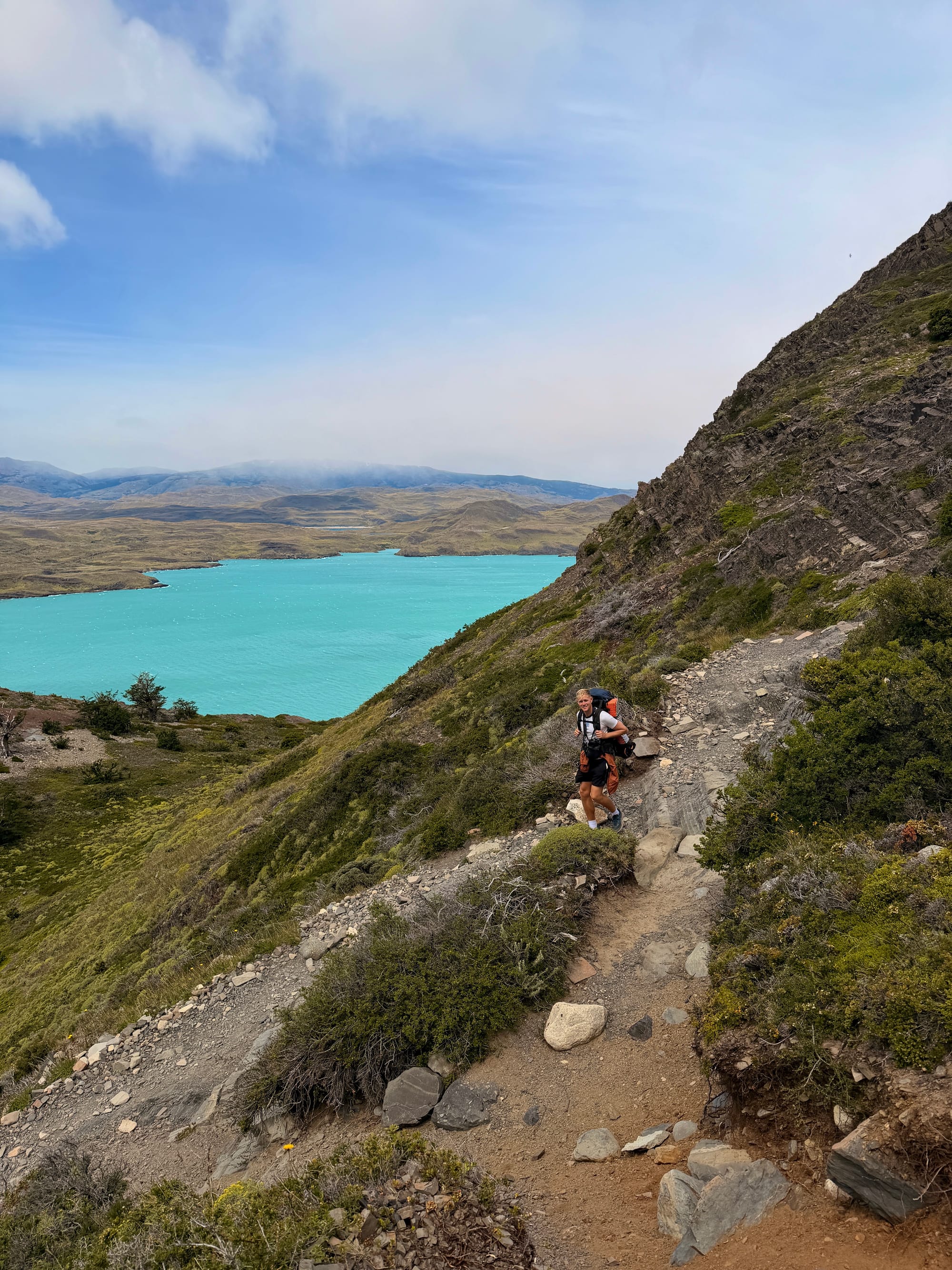 We got up early, met our friend Matt, and started the hike at 7:30am. It was a pretty flat start, with amazing views of the surrounding lakes and mountains. From Paine Grande you hike to Italiano, which is around 7.5km. It took us 2 hours to get to Italiano, which is where you can drop your big bags off. They let you store your bags there, as the hike up to Británico is very steep and hard, so you don’t want to be doing it with a heavy bag.